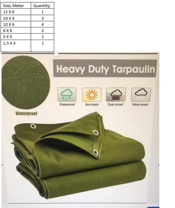 We stock tarps with various Thicknesses & Sizes.